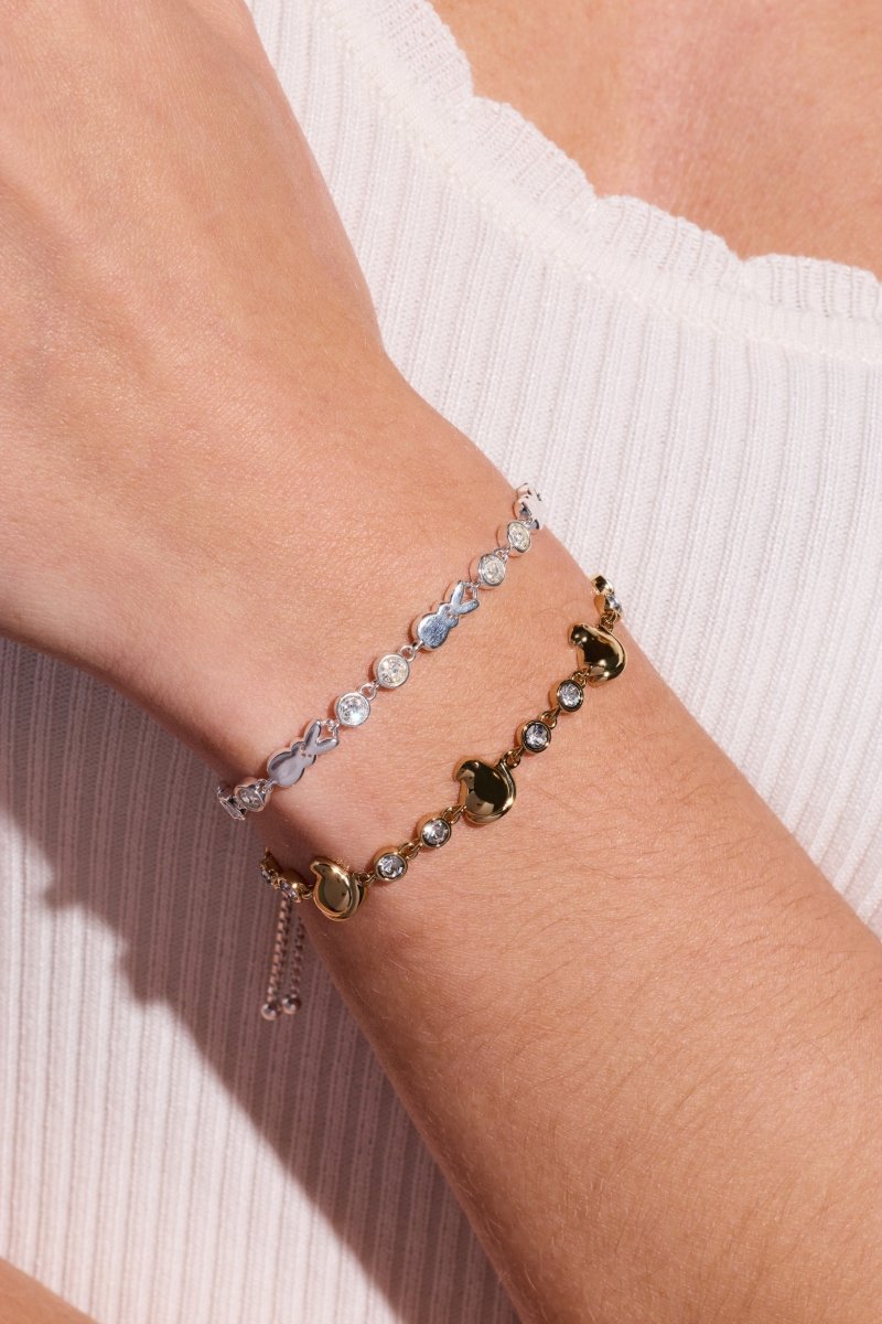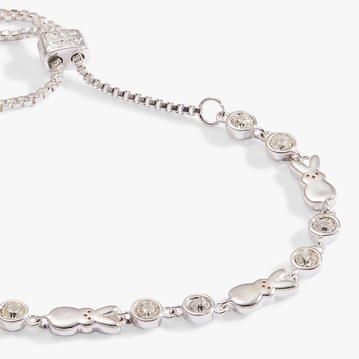 Celebrate everything sweet about springtime and Easter with this PEEPS® Bunny Bolo Bracelet, which features inline gold-tone PEEPS® bunny charms separated by sparkling crystal accents. The unique design has the adjustable length of a bolo bracelet, but also has a lobster claw clasp that makes it easy to put it on and take it off. Wear it to welcome the season — or gift it to "somebunny" you love.